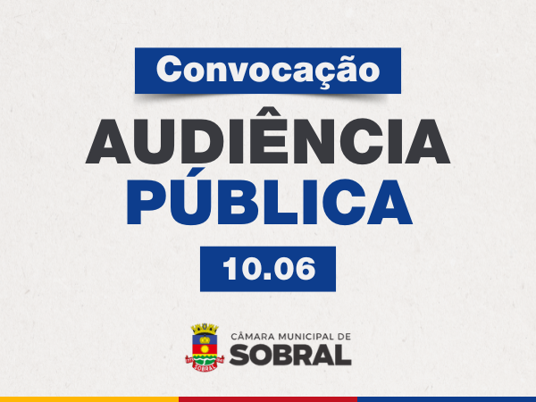 A Comissão Permanente de Finanças, Justiça e Redação da Câmara Municipal de Sobral, convida a população para participar da audiência pública que será realizada no dia 10 de junho de 2025, às 14h, no Plenário 05 de Julho.